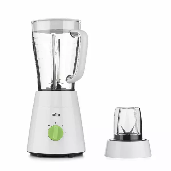 Braun Blender 1.75L Plastic Jug with Dry Grinder 500W JB0115WH 2 Plastic Jars Stainless Steel Blades Ice Crush Function 2 Speed With Pulse