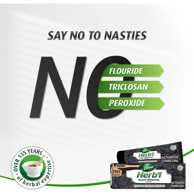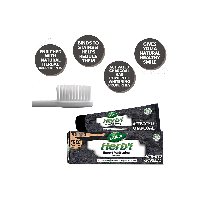 Dabur Herb’l Toothpaste Activated Charcoal Enriched with Activated Charcoal, For Healthy Gums & Strong Teeth, 150g with Brush