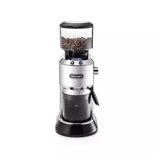 De’Longhi Dedica Pump Style Coffee Grinder With Large Bean Hoper , Burr Grinding System 14 Cups Capacity , KG521.M , Metalic