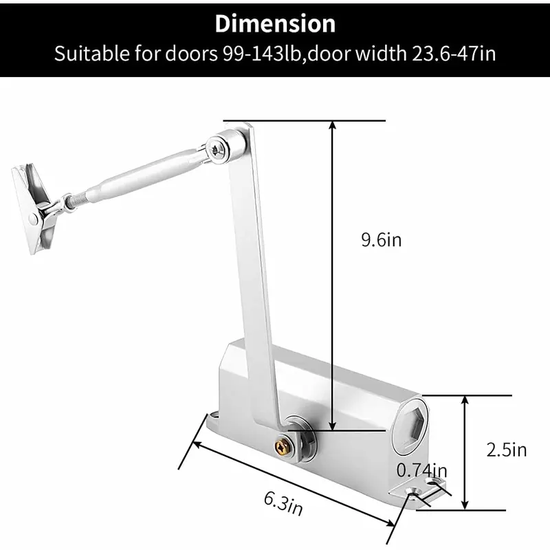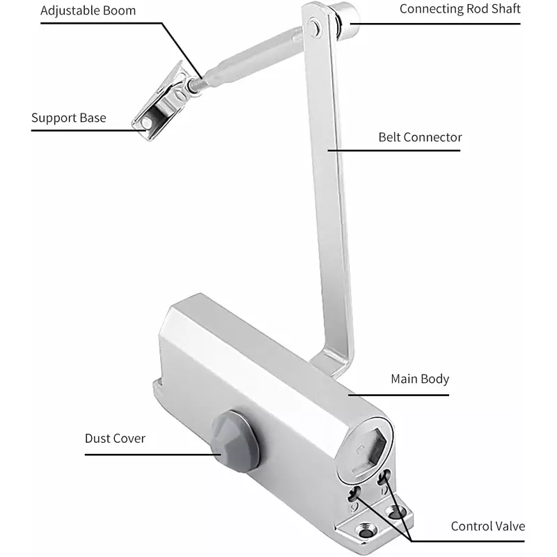 Generic Adjustable Overhead Fire Rated Door Closer – 45-75 kg Capacity, Easy Installation, Durable Aluminum Alloy for Commercial/Domestic Use.