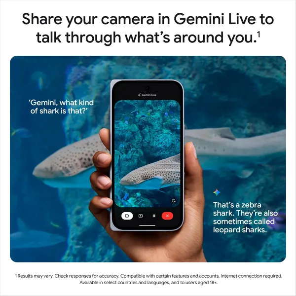 1 Gemini mobile app availability may vary by country and language. Check responses for accuracy. Internet connection required.