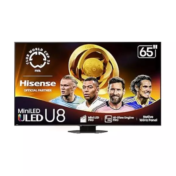 The Hisense U8 Series is an award-winning TV that makes for the ultimate game-watching experience. It’s enhanced with Mini-LED Pro technology, reaching up to 5,000 nits peak brightness for even sharper contrasts, brighter lighting and more dramatic shadows. Soak up over a billion vibrant shades on your screen with QLED Color. The 165Hz Native Refresh Rate and Anti-Glare Low Reflection Pro panel technology helps you see it all clearly without any interference. And Dolby Atmos along with an up to 82W 4.1.2 Multi-Channel Audio System bring all the sounds of the cinema right to your living room