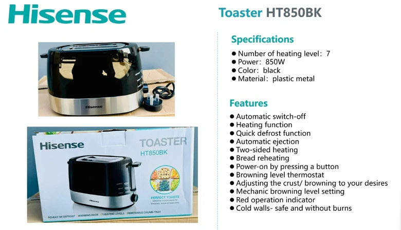 HISENSE Black Toaster 850 Watts HT850BK