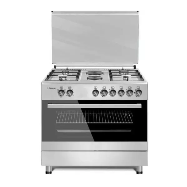 Hisense Cooker Free Standing 90x60cm 4 Gas Burners, 2 Electric Burner, Electric Oven, Glass Lid, Silver HF942GEES