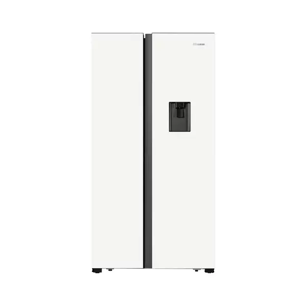 The Hisense 508L White Delectable Side By Side Fridge has an A energy rating, a water dispenser, and Super Cooling and Super Freeze. Features a Multi-Air Flow system for an even distribution of air.