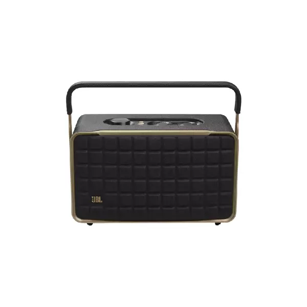 The JBL Authentics 300 delivers iconic style inspired by classic JBL retro designs, in a portable home speaker that looks great in any decor. It will easily fill any space, big or small, with superior JBL sound. And the speaker’s convenient cast-aluminum handle, custom leather-like enclosure, and reimagined Quadrex grille really show the attention we paid to each visual detail, right down to the special JBL signature pattern on the down-firing passive radiator.