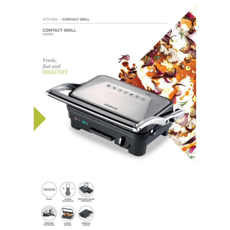 Kenwood Contact Grill Adjustable Temperature Cool Touch Handle 1800w Hgm50.000si – Adjustable Grill Position Contact Grill And Open Grill