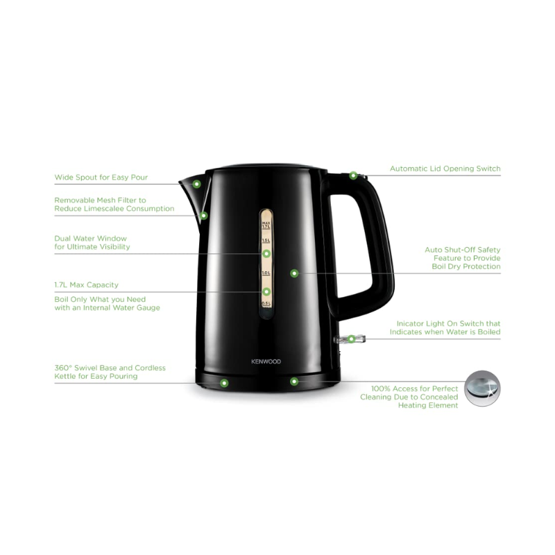 Kenwood Kettle 1.7L Cordless Electric Kettle 2200W with Auto Shut-Off & Removable Mesh Filter ZJP00.000BK