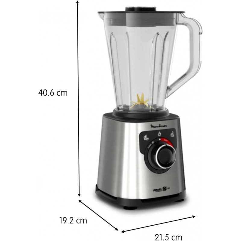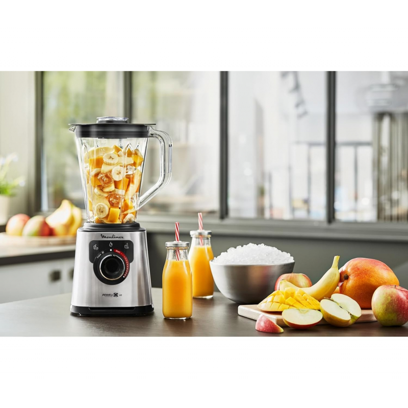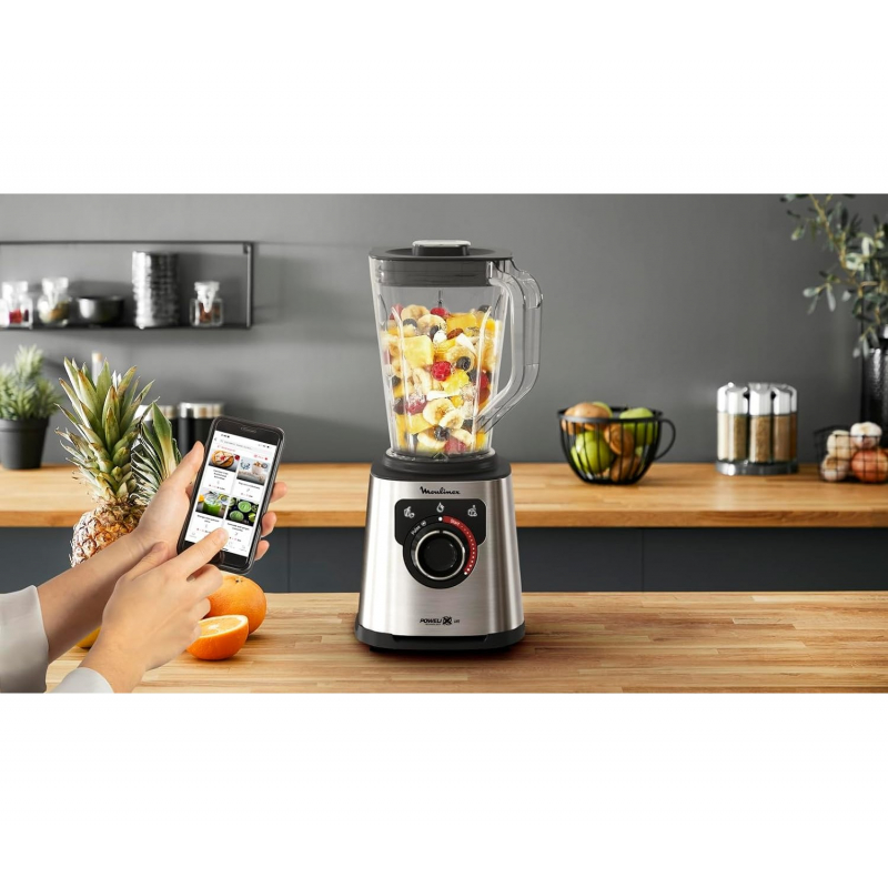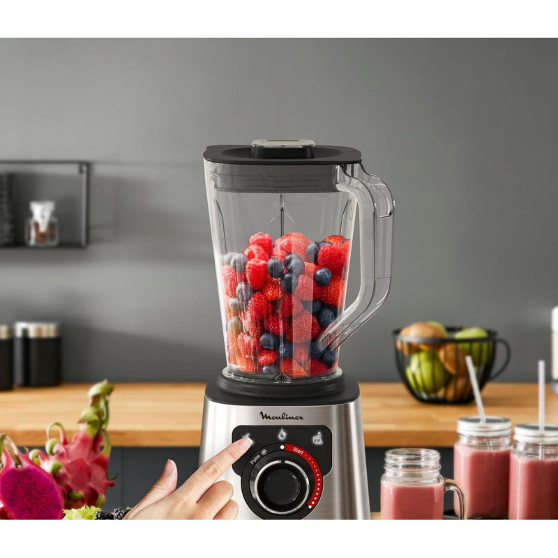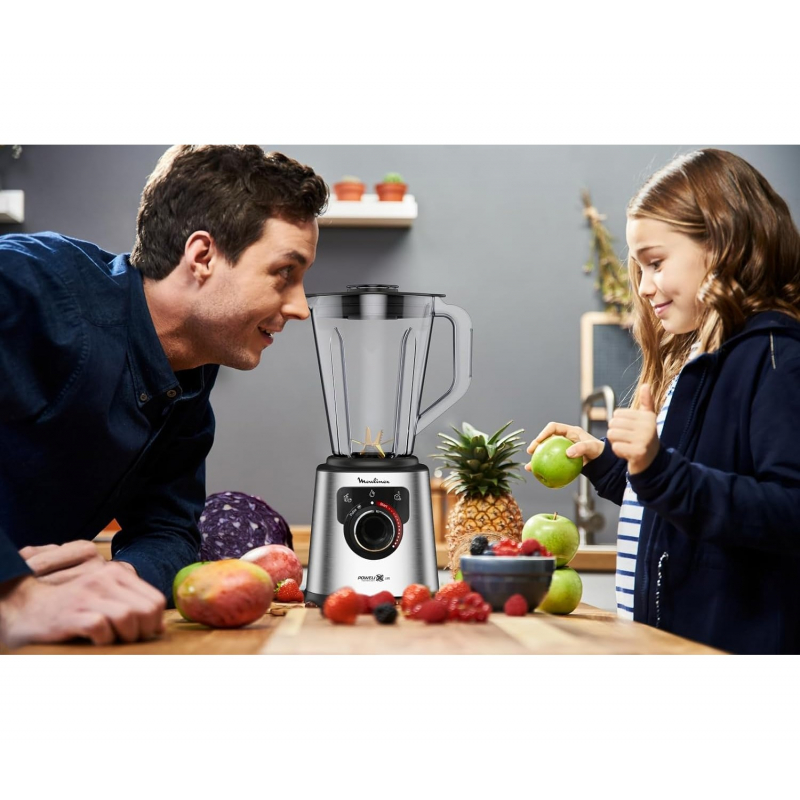 Moulinex PerfectMix + is a high-speed blender that brings together powerful blending with a versatile app offering endless inspiration. Exclusive Powelix Life Technology with blades that last up to 2X longer* comes together with a powerful 1200 W motor for up to 30% faster results.**. The blades are titanium coated to maximize durability and best results. Discover over 200 inspiring recipes and a dedicated Perfect Mix pairing service on the free Moulinex app, a generous, light & unbreakable 1.5 L usable tritan jar and more—along with automatic programs and a user-friendly touchscreen interface. Its powerful 1200W motor ensures fast results, while pre-set programs and a backlit speed selector make blending easy. With a large capacity jar, it’s the ideal blender for the whole family.