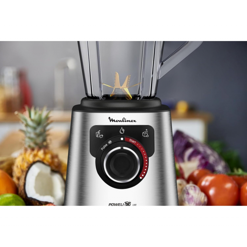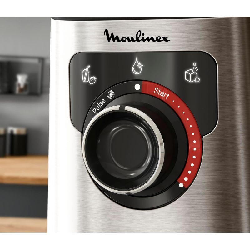 Moulinex Blender 2L Tritan Blender Jar with 2 Mills, 1200W, Titanium Coated Blades, 2x Blade Life, Powelix Life Technology, Stainless Steel Body, Backlit Speed Selector, Large Capacity Jar LM88HD27