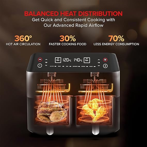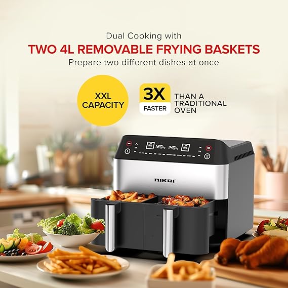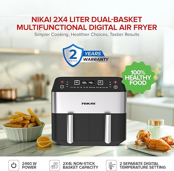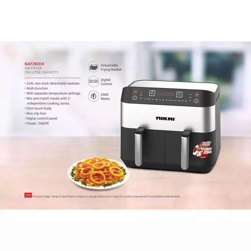 Nikai Airfryer 4lx2 Digital Double Decker 2460w NAF282dX Detachable Frying Control Basket Digital Screen With Separate Temperature Settings