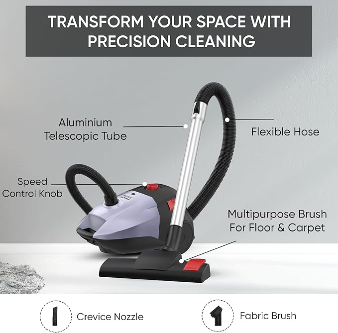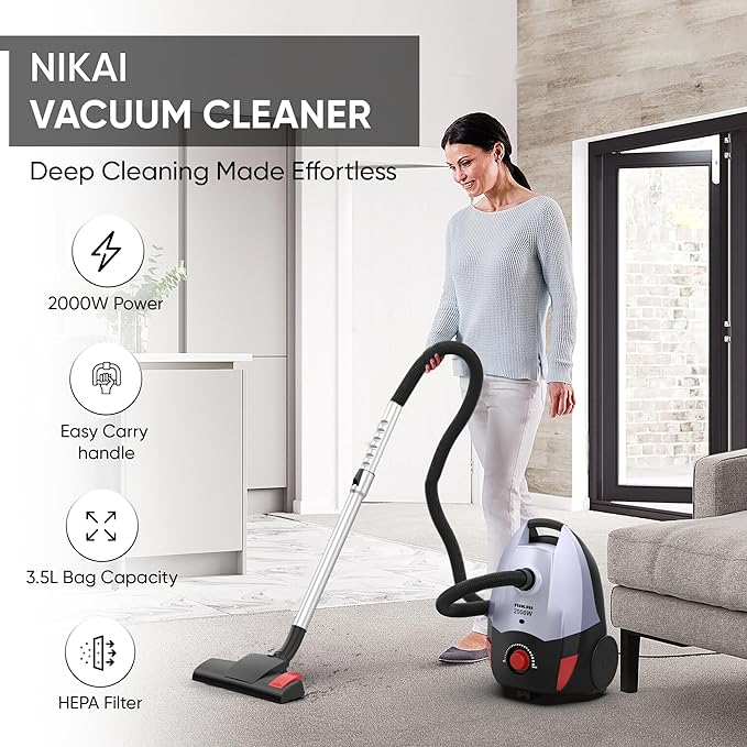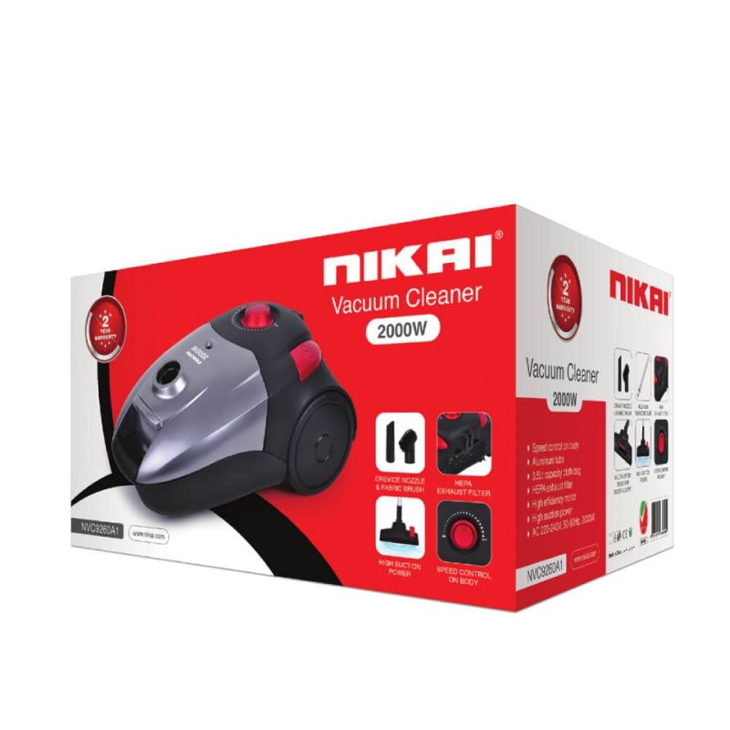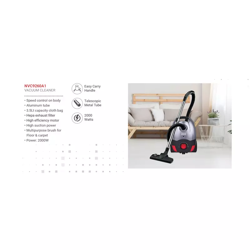 Nikai Vacuum Cleaner 3.5l Carry Handle with Cloth Bag 2000w NVC9260A1 Metal Telescopic Tube Exhaust Filter Multipurpose Brush For Floor And Carpet High Efficiency Motor