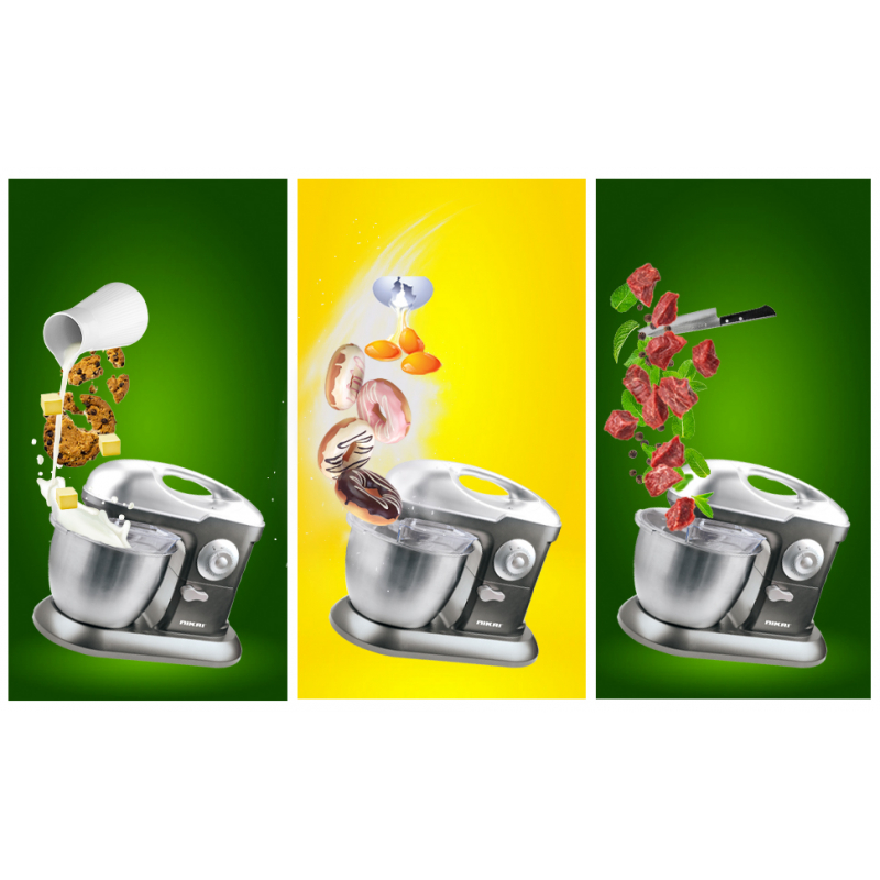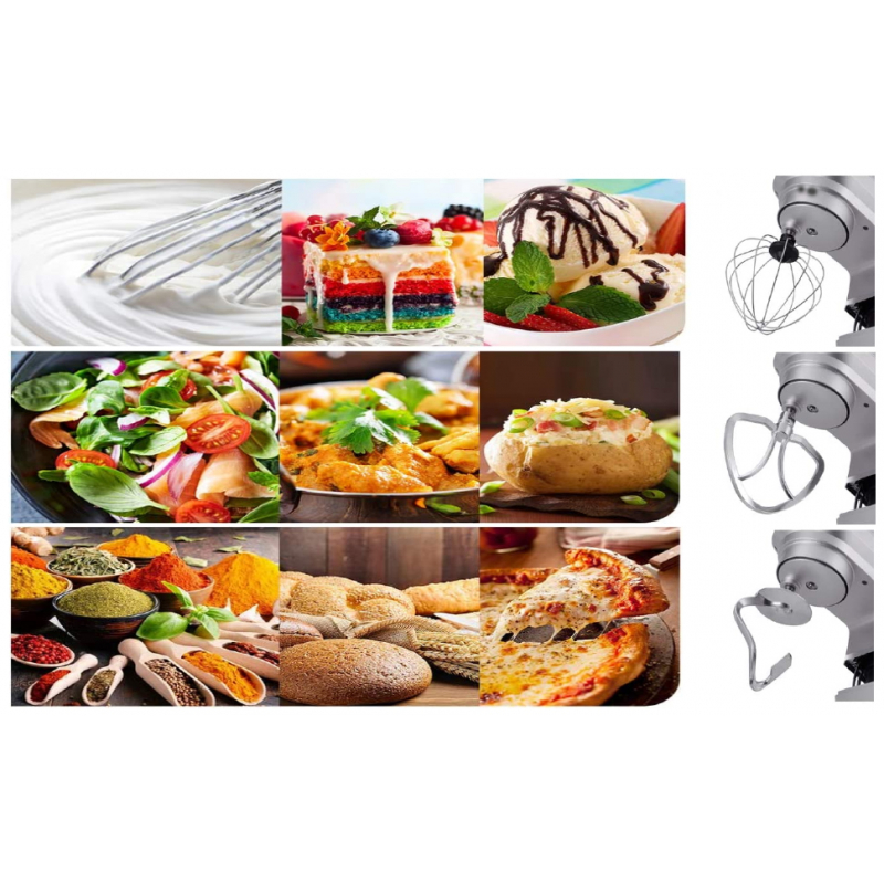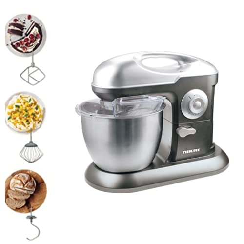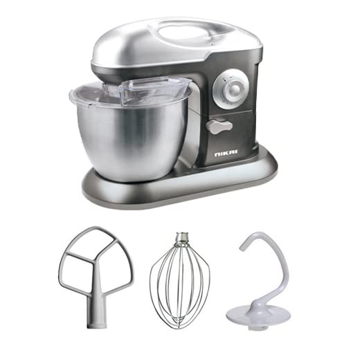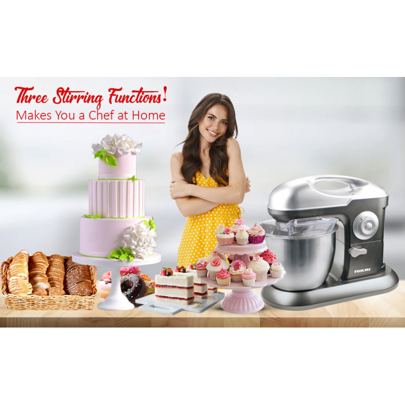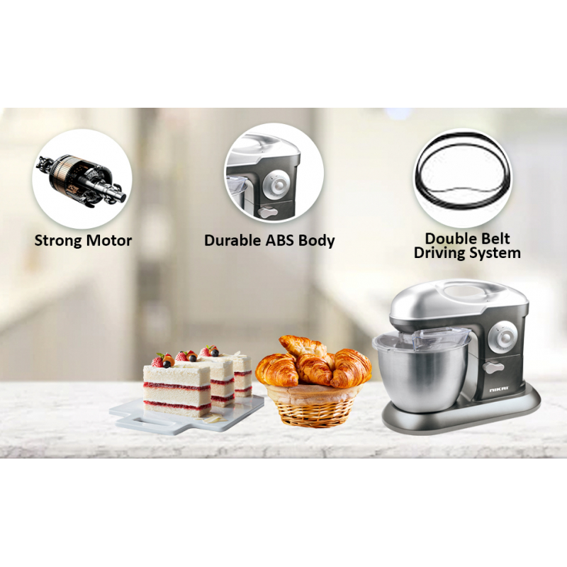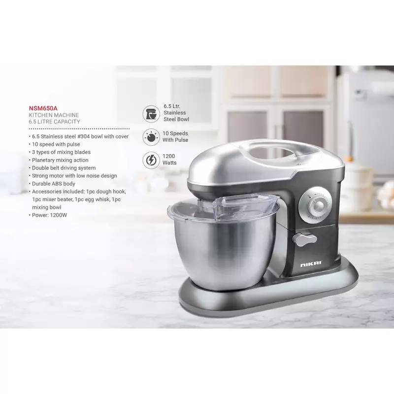 Nikai Kitchen Machine 6.5L Steel Bowl With Cover 1200W NSM650A Stainless Steel Bowl With Cover Metal Gear 3 Blades Whisk, Dough Hook & Beater 10 Speed With Pulse