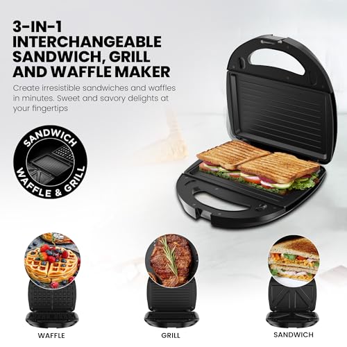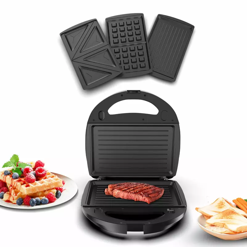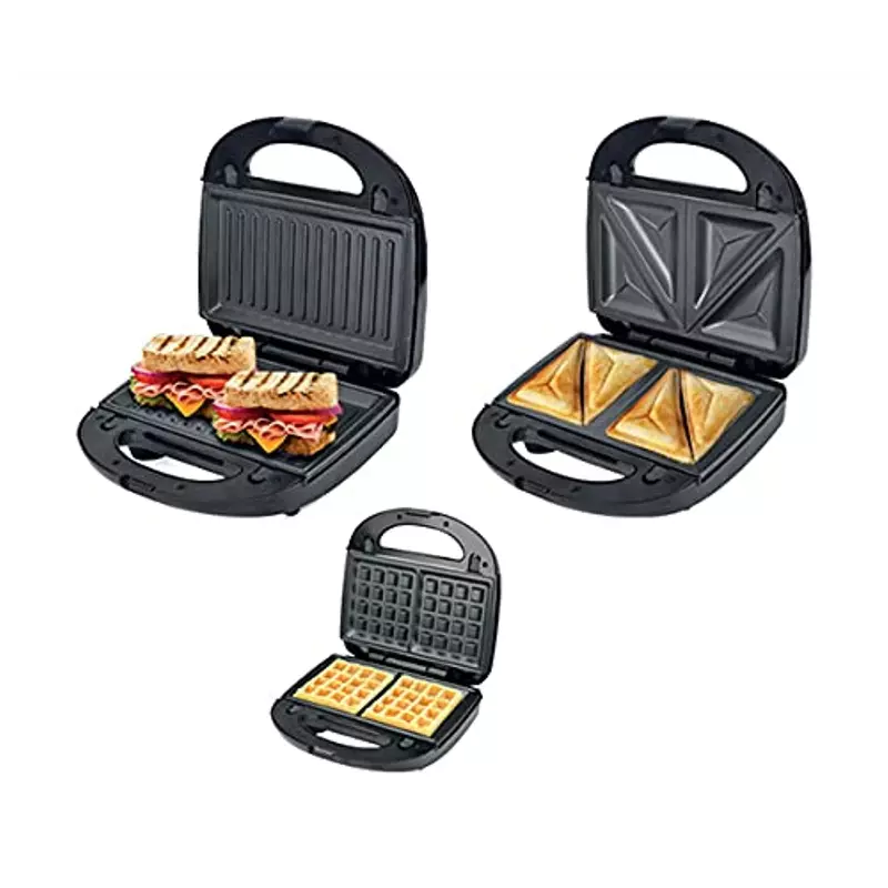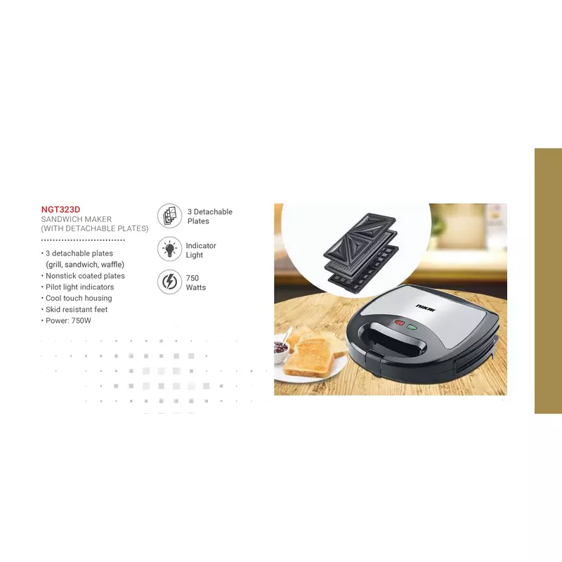 Nikai Sandwich Toaster 2 Slice 3 In 1 Waffle Grill And Sandwich 750W NGT323D Non Stick Coating Plates Cool Touch Housing Detachable Plates With Light Indicator