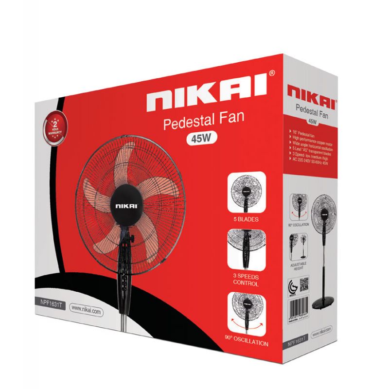 Be the first to review “Nikai Stand Fan 16 Inch Padestal Fan 5 Blades 45W NPF1631T Wide Angle Horizontal Oscillation High Performance Copper Motor 3 Speed Low Medium And High”