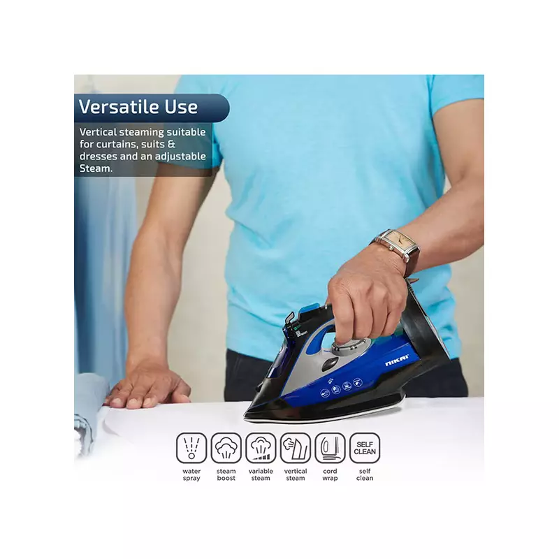 Nikai Steam Iron 320ml Tank Dry and Spray Function 2200w NSI808CS Temperature Control Nano Ceramic Sole Plate Vertical Steam Function Indiator Light Powerful Burst System
