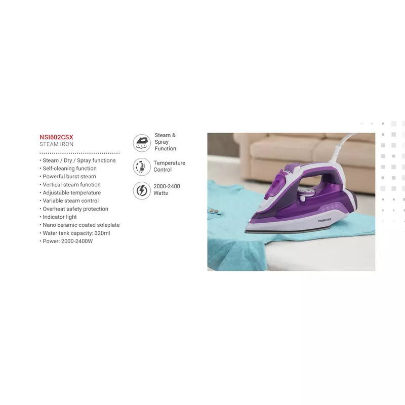 Nikai Steam Iron 320ml Tank Dry and Spray Functions 2400w NSI602CSX Temperature Control Nano Ceramic Coated Soleplate Vertical Steam Function Indicator Light Powerful Burst System
