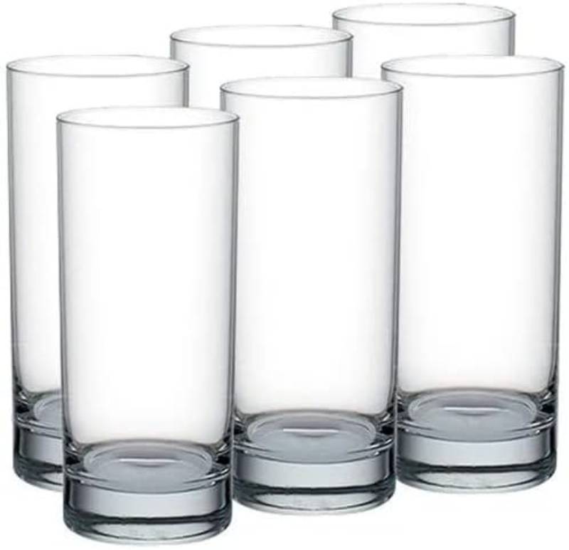 Give your table a contemporary vibe when you display this set of six highball glasses. Perfect for serving chilled drinks, this set is made from glass and is dishwasher safe.