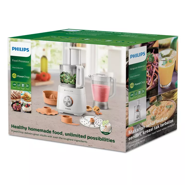 Philips Viva Compact Food Processor 800W 2in1 Disc, Citrus Press, 29 Functions with PowerChop Technology HR7510