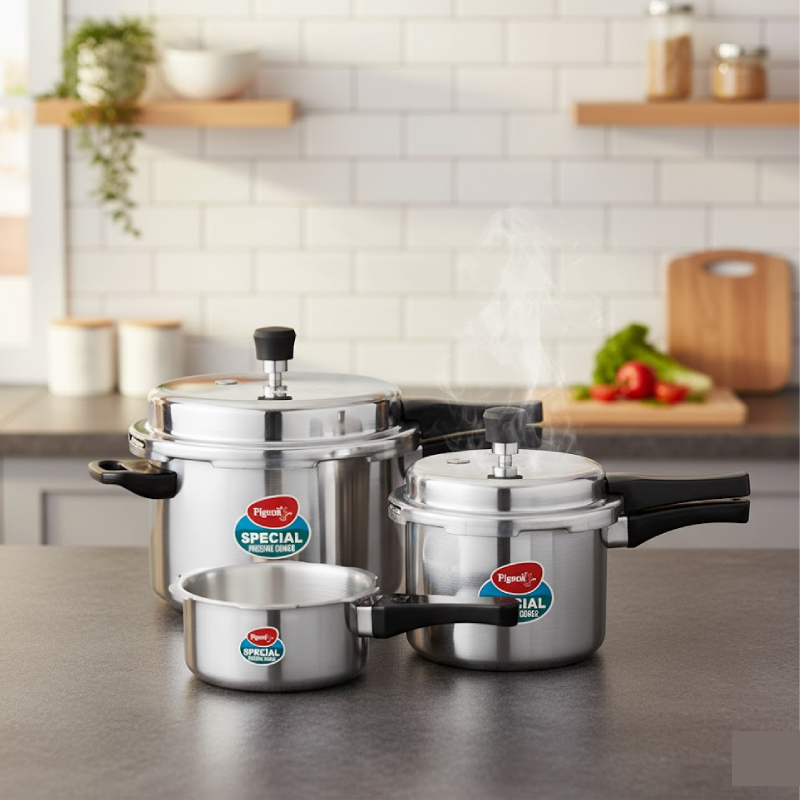 Pigeon Aluminium Pressure Cooker Set – 2L, 3L & 5L Outer Lid Durable Cookers for Fast Cooking SAP 12739