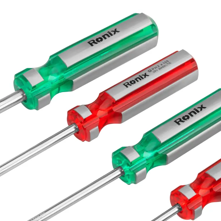 Tips & Rods The high-resistant hardened tips are designed in both slotted (or flat head) and phillips (or cross head) drive shape and as a result, there will be more strength and durability. These black oxide tips also deliver a perfect fitting inside fasteners. On one the most highlighted specifications about Ronix Screwdriver Sets is the magnetic screw-lock system. The outcome of this simple, but wonderful feature is accuracy and comfort alongside with a secure grip. The magnetic characteristic of screwdrivers comes to the operator’s aid in both horizontal and vertical usages. The rods are normally round-designed and they are made of Cr-V steel. This kind of superior-quality alloy secures your hand tool’s high long-life performance.