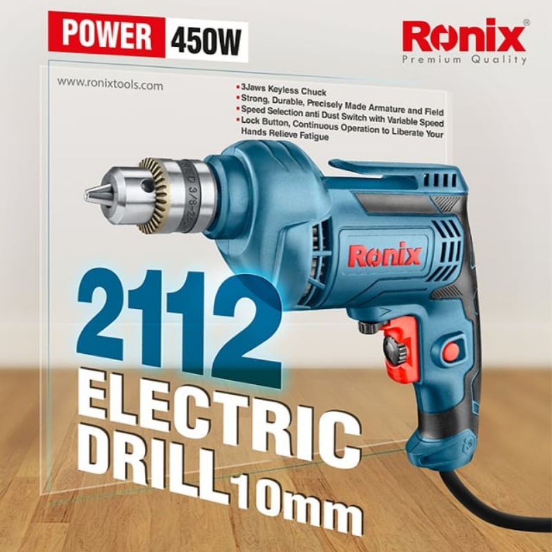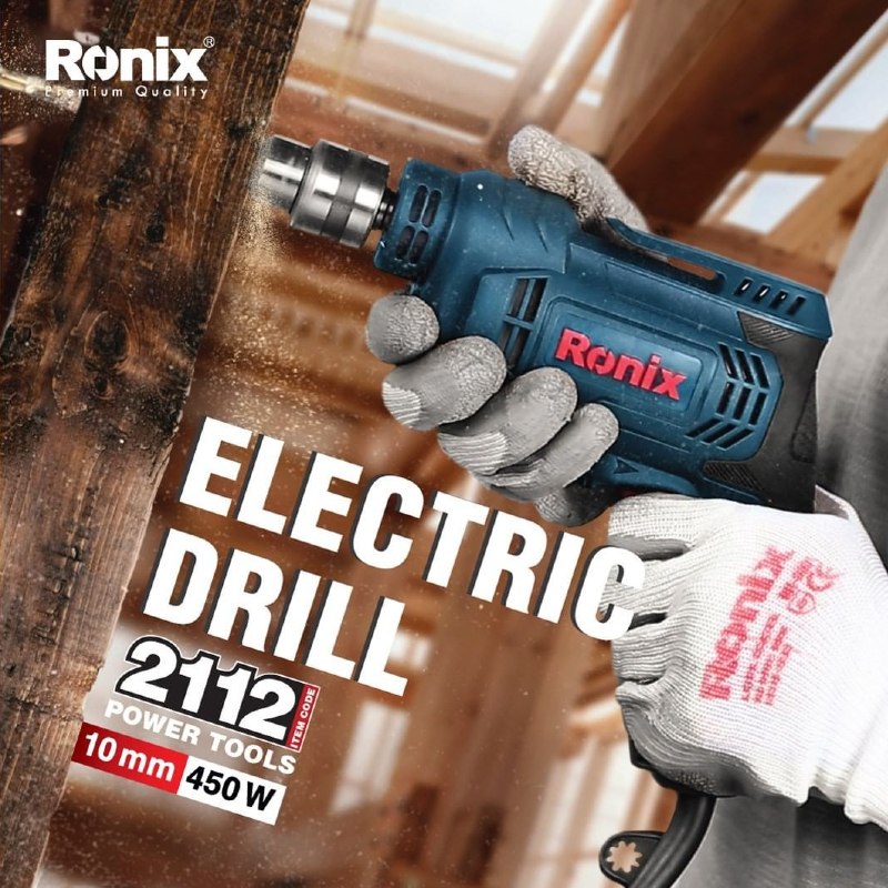 Ronix Electric Corded Drill, 450W, 220V, 10mm, Keyed Chuck – 2112