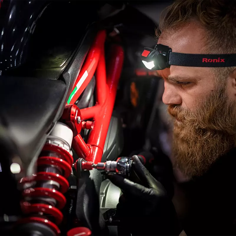 Ronix’s long-lasting and high-power headlamps provide the lighting you need during climbing, camping, caving, and other activities. Ronix RH-4286 rechargeable headlamp is equipped with a motion sensor and covers all your needs with its excellent quality and durability.