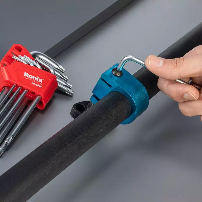 Torx keys, also known as Torx wrenches or Torx drivers, are used for tightening or loosening screws and bolts with a specific Torx-shaped head. Torx is a type of screw drive system, designed to provide a higher torque transfer and reduce the risk of slippage compared to other drive types. Torx keys are commonly used in various industries, including automotive, electronics, and machinery, where precise and secure fastening is required. The Ronix RH-2036 long-arm Torx keys are identified by a number that corresponds to the size of the screw. The smaller the number, the smaller the screw; so, It is important to choose the right size wrench for the screw you are using, as a wrench that is too small may slip and one that is too large may damage the screw. There are 9 different sizes in this kit ranging from T10 to T50, so it is important to choose the right size for the job.