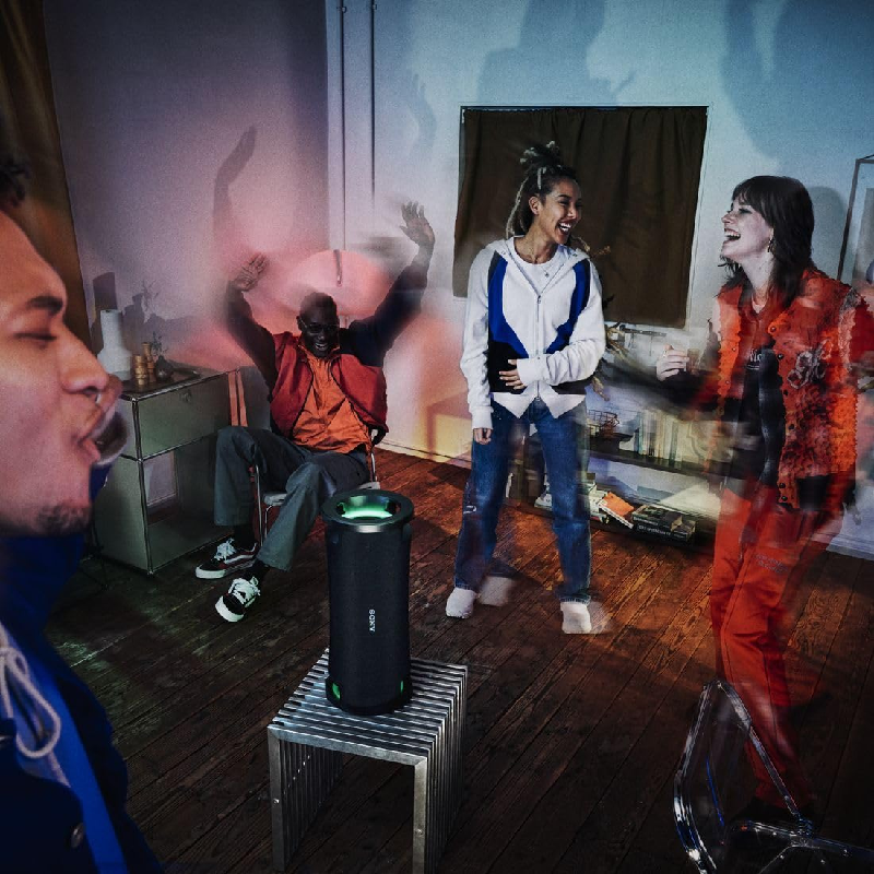 Bring the ultimate vibe with colorful lighting that synchronizes with your music and is easily controlled via the Sony | Music Center app and Fiestable app.