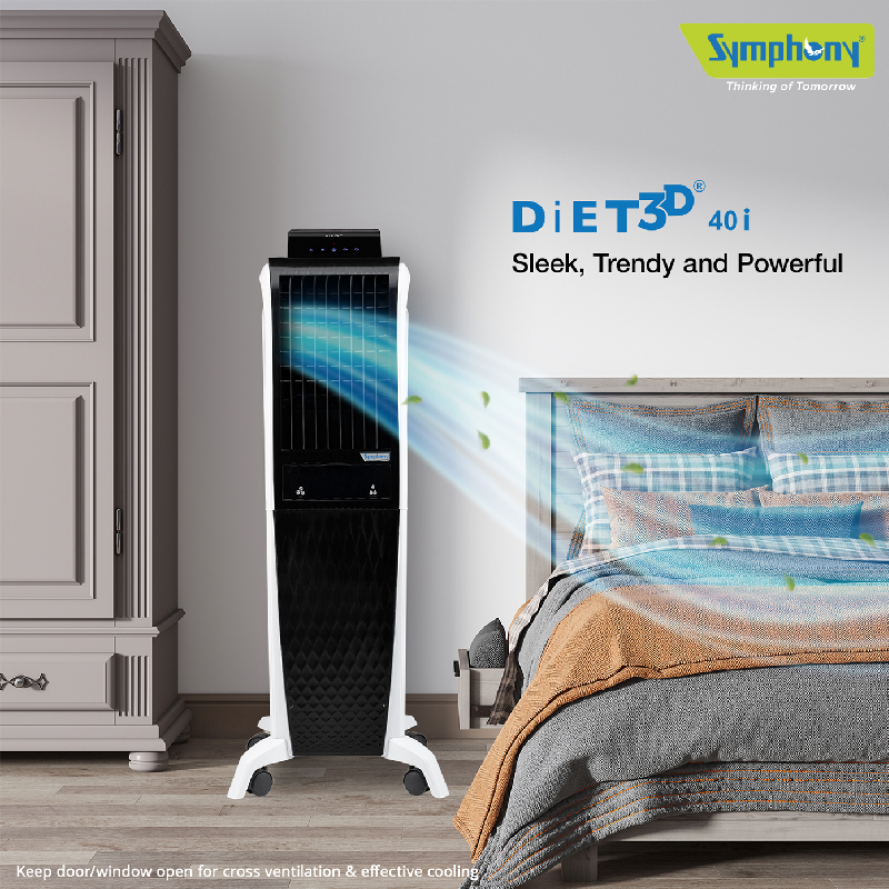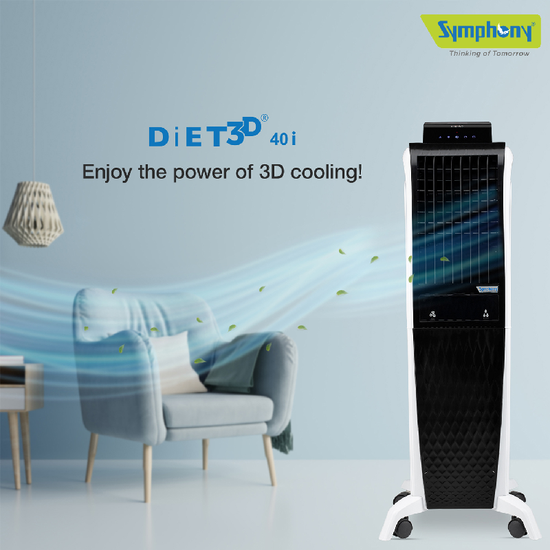 Symphony Tower Air Cooler 40L with Magnetic Full Function Remote DIET 3D 40i
