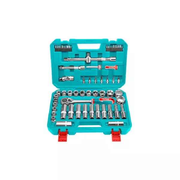 Total Socket Set 1/2″ with Three Colour Soft Handle, Chromed Plated, Heat Treated THT121602 (Pack of 62pcs)