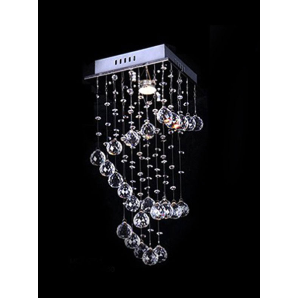 The chandelier with stainless steel plate decorated with lots of crystal droplets that are arranged in rows, once put on it gives an amazing array of sparkle that would dazzle any room finish.
