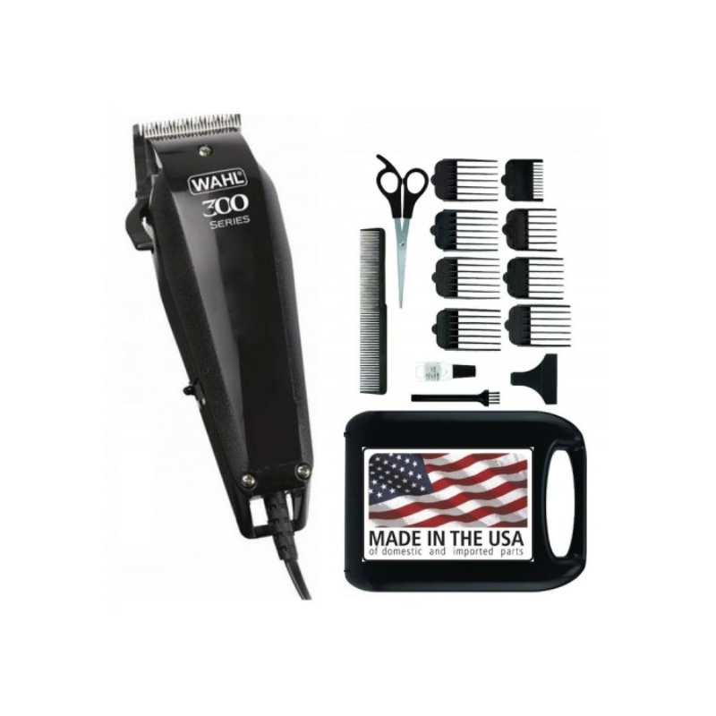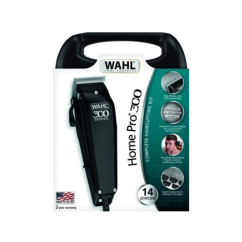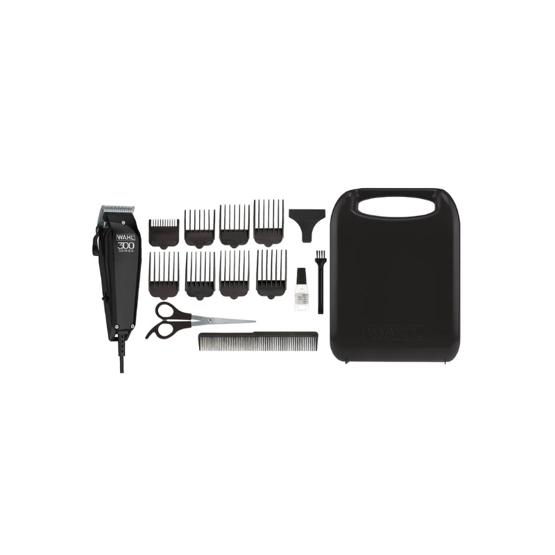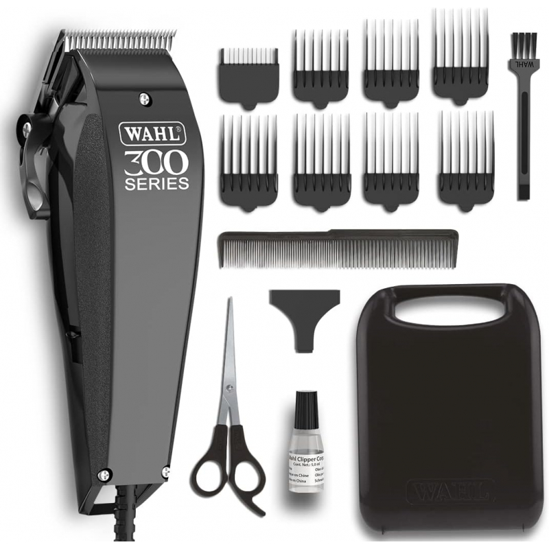 Wahl Corded Hair Clipper Kit Home Pro 300 Series with with 8 Combs, Cleaning Tools & Case Black 9247-1327