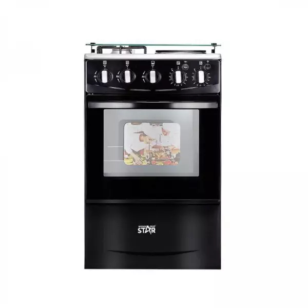 Winning Star Freestanding Cooker 2 Gas Burners, 2 Electric Burners with 52L Oven Black