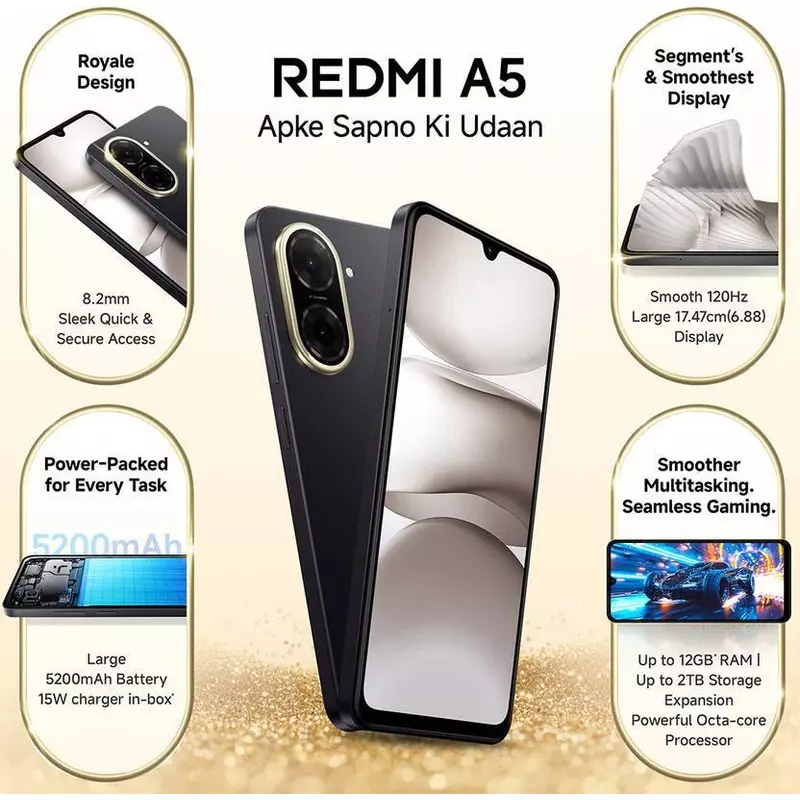 Xiaomi Redmi Smartphone A5 64GB 3GB RAM 32MP AI dual camera Immersive 6.88″ display T7250 Processor